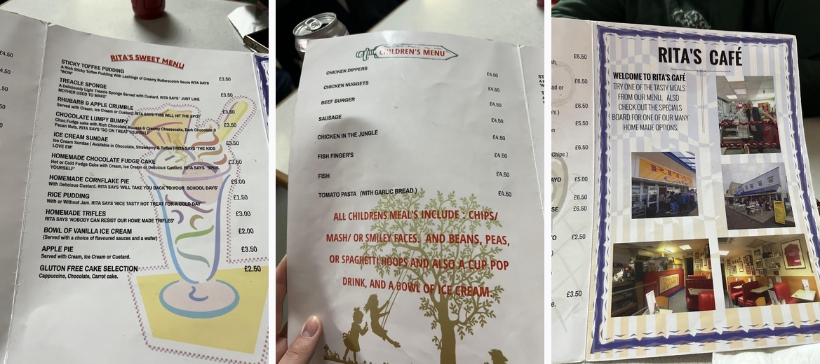 Came to Rita’s Cafe for a breakfast and it was really nice. You get a decent portion of food for your money and a friendly service. They also know how to make a good cuppa which is rare in cafes nowadays 😁 I recommend trying the cakes too as they’re all homemade! The trifle is amazing as I had to try one after noticing them! Thanks for having us and we’ll see you next time we’re in Morecambe! ⭐️⭐️⭐️⭐️⭐️